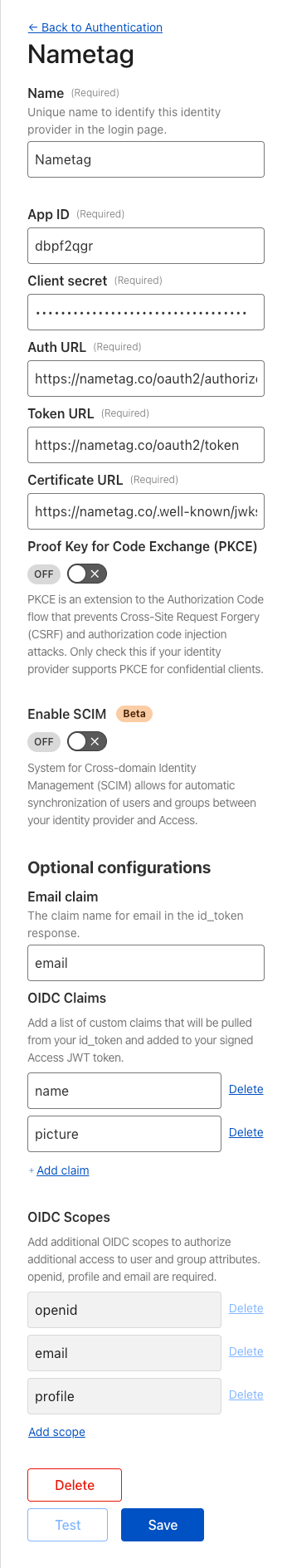 - Nametag completes the OIDC flow, issuing an