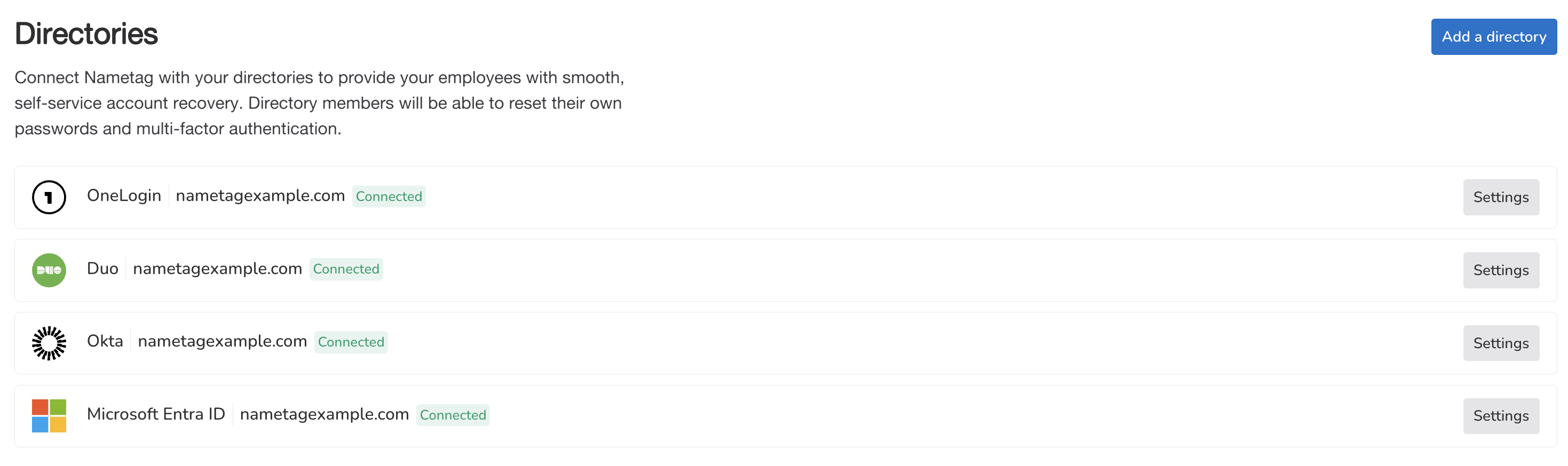 - A directory (e.g. Okta or Entra ID) connected to Nametag.