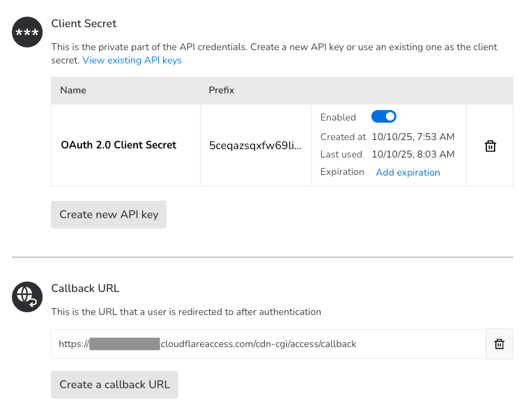 Select Create a callback URL and enter your Cloudflare Access callback URL: